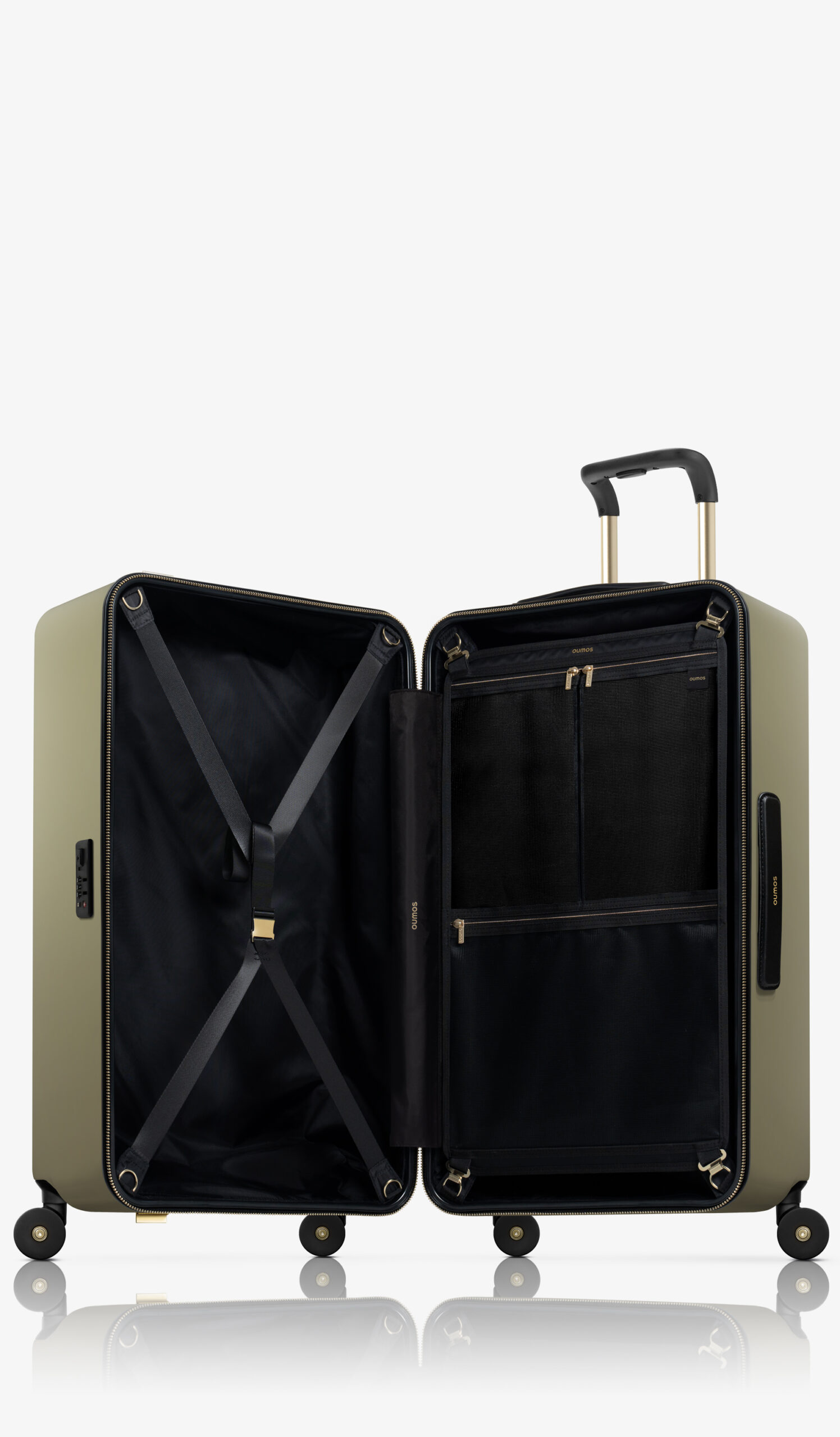 The interior lining of the OUMOS suitcase is easily removable and washable, ensuring impeccable cleanliness after every journey. Whether for a business trip or a relaxing getaway, the inside of your suitcase always remains flawless.